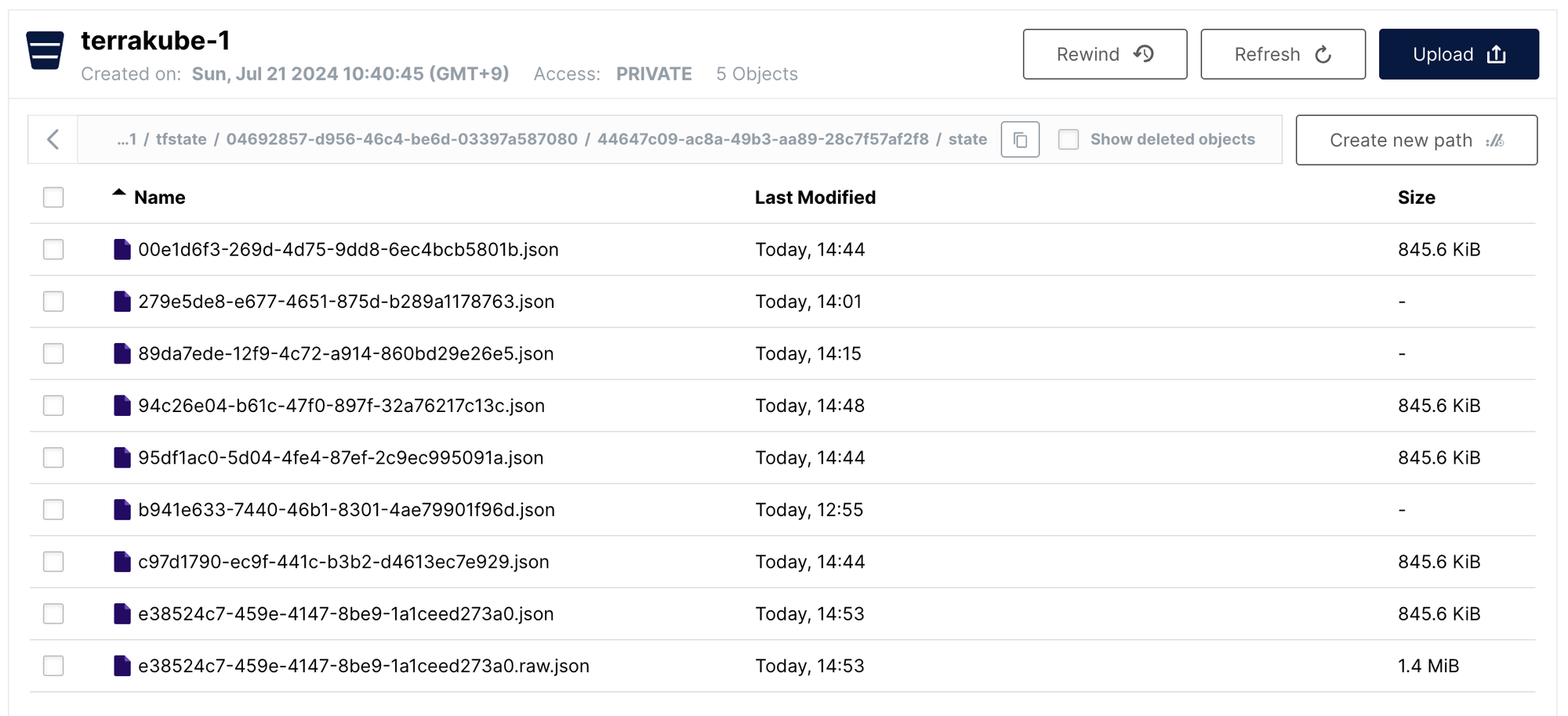 ERROR 1 --- [nio-8080-exec-5] o.t.a.p.s.aws.AwsStorageTypeServiceImpl : S3 Not found: The specified key does not exist. (Service: Amazon S3; Status Code: 404; Error Code: NoSuchKey; Request ID: 17E4262EB3C1E5F8; S3 Extended Request ID: dd9025bab4ad464b049177c95eb6ebf374d3b3fd1af9251148b658df7ac2e3e8;Proxy: null)But at this point there is effectively a state uploaded:
