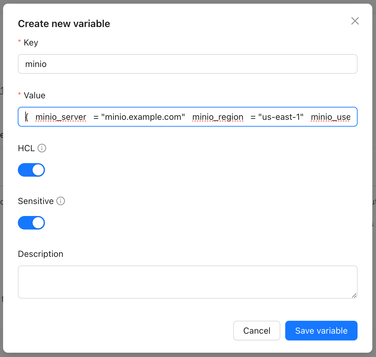 ERROR 1 --- [ task-217] o.h.engine.jdbc.spi.SqlExceptionHelper : ERROR: value too long for type character varying(3072) terrakube-api-644d98758-zb8l2 2024-07-21T06:44:13.154Z ERROR 1 --- [ task-217] c.y.e.d.j.t.AbstractJpaTransaction : Caught entity manager exception during flushIt would be nice to directly upload / edit terraform.tfvars
